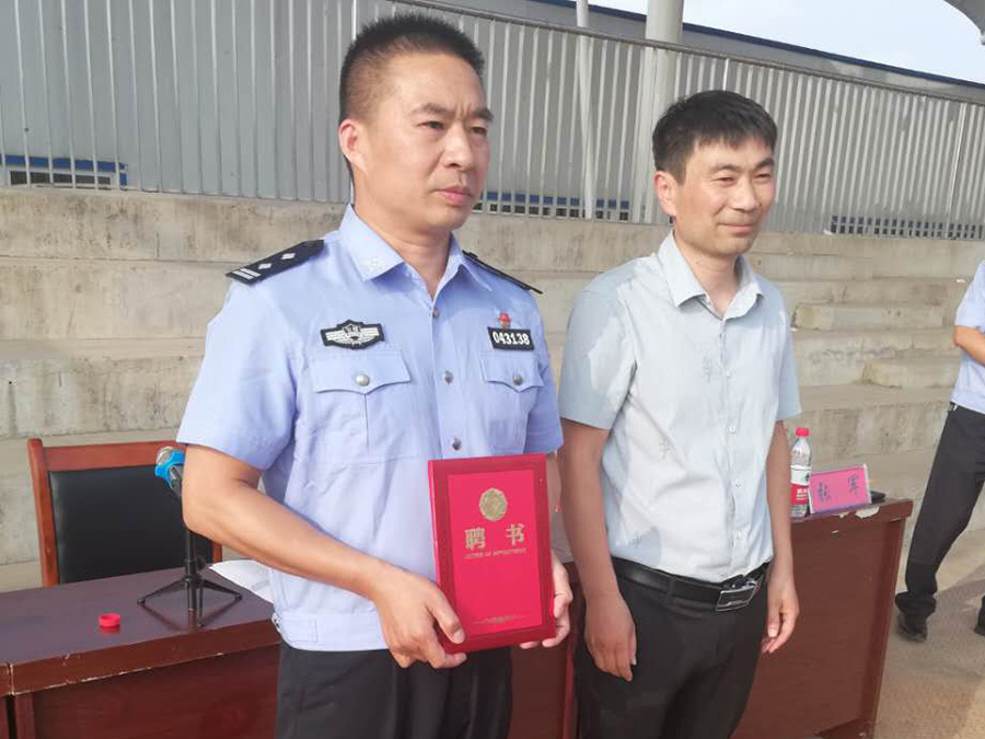 张军向荣俊良颁发阜阳科技工程学校法制副校长聘书