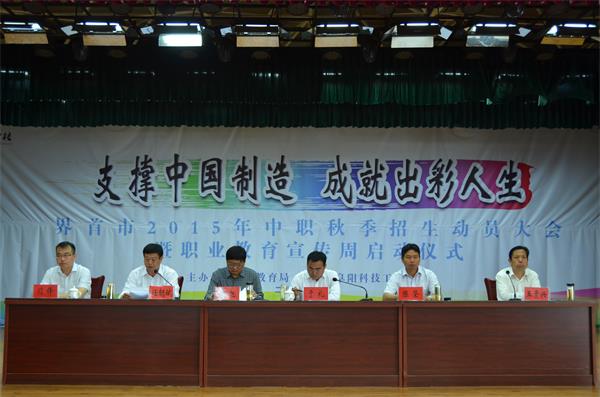 514日,界首市2015职业教育活动周启动仪式在阜阳科技工程学校举行。界首市教育局班子成员、全市各中心校校长、初三班主任等参加启动仪式。