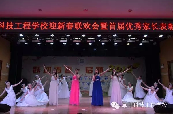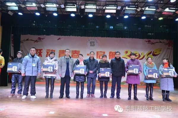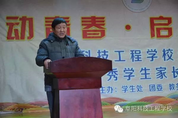 1月12日,阜阳科技工程学校举行迎新春联欢会暨首届优秀家长表彰会,界首市关工委主任于修波,界首市教育局关工委主任范兴光参加表彰会。