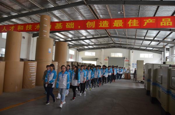 在安徽鼎鑫纺织品有限公司现代化的服装生产流水线上,企业负责人一边带领同学们参观一边讲解这条国际最先进的生产线的规模和效率;在界首市鑫旺彩印包装有限公司,公司总经理介绍完企业基本情况后,希望更多的青年朋友、有志之士加入鑫旺,一展远大抱负,成就完美人生;安徽强旺集团董事长张强为同学们详细介绍了企业的发展历程、企业文化和先进的管理理念,现代化的机器人生产线淘汰了传统的生产工人,但是企业仍然求贤若渴,特别是对技能型人才。他希望青年学子们努力学习,勤奋做人,强旺等着大家。