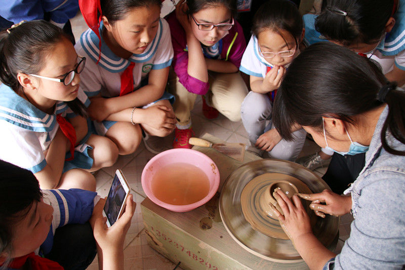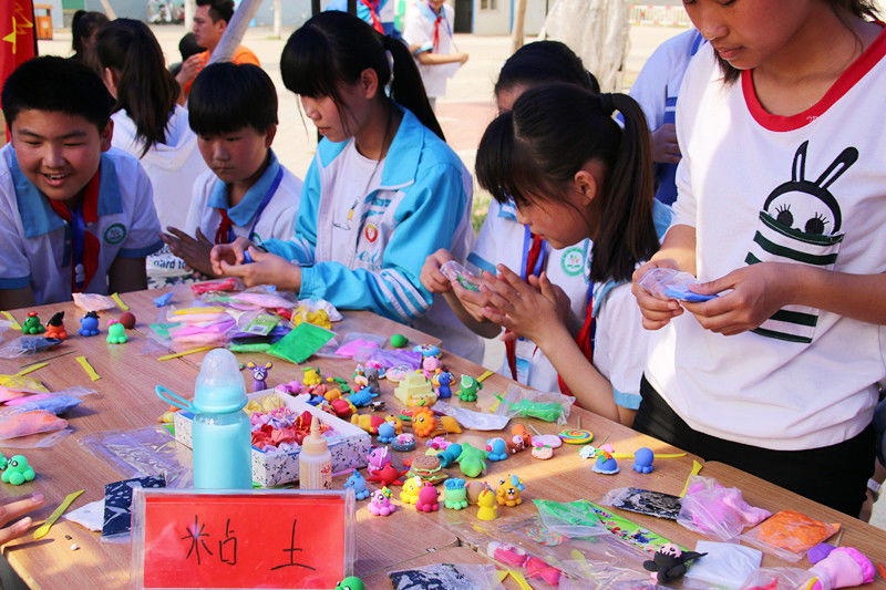 阜阳科技工程学校开放了校内的各个功能实训室,在体验展示区开放了所有的社团,展示社团作品,大手拉小手,帮助和指导小学生职业体验。小学生们看到正在学习汽车修理、化妆盘发、数控零件加工、服装制作等专业的“大学生”们,看着一排排各式各样的机器设备惊叹不已,按捺不住要求马上去体验。小学生们选择自己喜欢的专业和项目,跟着阜阳科技工程学校的“小老师”自己动手制作,体验职业技能带来的乐趣。彩陶的拉坯泥塑、中式面点的揉面团、包饺子、摊煎饼,盘发、钢琴、剪纸、十字绣、竹编、折纸、丝网花、下棋、素描、无人机等手把手教小学生们体验,也有小学生积极地跟着非物质文化遗产界首渔鼓传承人苗清臣打简板学唱渔鼓。