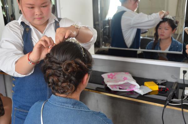 近日,阜阳科技工程学校艺术服务部举行了形象设计专业学生技能比赛。
