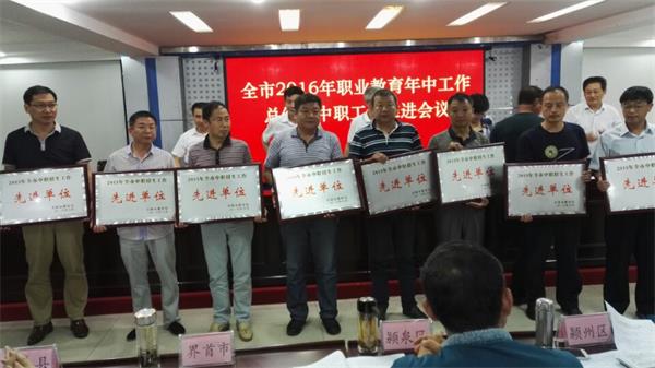 会上,阜阳科技工程学校作为先进典型交流发言。学校负责人就学校教科研工作和职业技能大赛工作情况作《根深则叶茂,本立而道生》的交流发言,特别汇报了学校在2015年阜阳中职技能大赛倒数第二名,面对这个成绩学校上下没有气馁、痛定思痛,及时拟定2016年大赛指导思想和方案,创新备赛,坚持系统思维提高成绩,2016年打了翻身仗,取得中职技能大赛阜阳市赛团体第二名,省赛一等奖1个、二等奖2个、三等奖6个的好成绩。介绍了学校一年来:立足校本坚持问题导向抓实教研,强化课题坚持小处入手提升内涵,学校教科研工作成效显著,促进了学校教育教学质量的不断提高。本次会上阜阳科技工程学校还被评为阜阳市2015年度中职招生工作先进单位。
