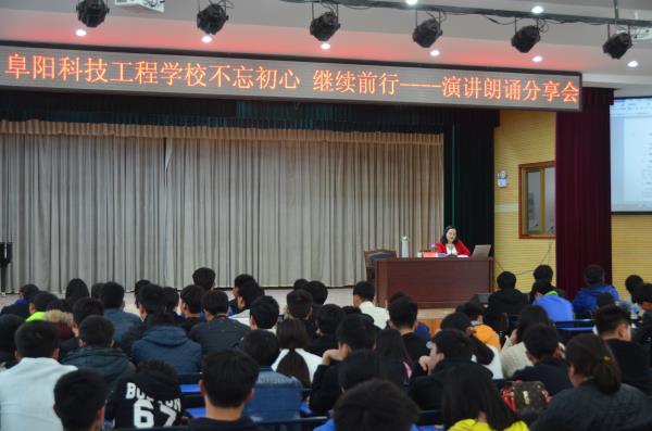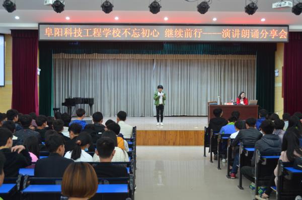 4月7日,阜阳科技工程学校举行“不忘初心继续前行——演讲朗诵分享会”。优秀学生代表、全体学生会干部和部分青年教师参与分享会。