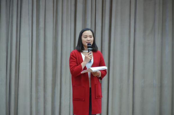 分享会邀请安徽省演讲学会会员、山东省朗诵艺术家协会会员李丽娜主讲,李丽娜用现场演示的方法介绍了演讲的基本分类、演讲和朗诵基本技巧以及注意事项,分析了演讲中仪表、动作、表情、声音等各方面应具备的素质要求,并积极与在场同学互动,同学们也积极配合,踊跃上台演示。