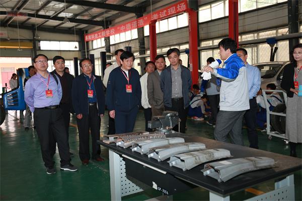 在阜阳科技工程学校,葛阳一行实地查看了学校的沟塘景观区、非遗教育基地、彩陶实训室、汽车维修实训中心等功能室和实训场所,听取了校长闫锋关于学校发展历程、办学特色和目标、教育教学管理、师资队伍建设、校企合作产教融合、招生就业等方面工作的具体汇报。