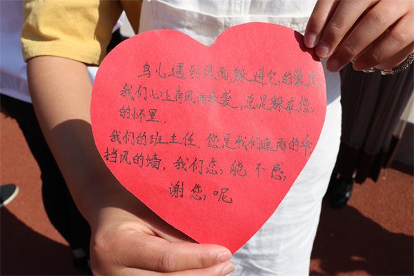 会上,张立副校长致辞。各班学生代表为自己的班主任献上鲜花和心愿礼品包,并且表达了各自对班主任的祝福。整个场面隆重而热烈,到处洋溢着喜庆的气氛。穆达书记作了重要讲话,指出班主任是教师队伍里工作量、压力最大的人; 班主任是付出心血较多和最富有爱心的人;班主任是贡献较大和最值得尊重的人;班主任是最需要理解和帮助的人。班主任节的设定,是全校师生对班主任工作的肯定和尊重。同时他还对班主任提了几点要求:加强师德修养,以自身人格魅力感召学生;不断学习,丰富自己,提升魅力;充满爱心,学会尊重欣赏学生;讲究教育艺术提高管理效能。他希望各位班主任能以此届班主任节为新起点,认真履行班主任职责,以高度的责任感和强烈的事业心做好班主任工作,为不断提升我校办学品位和实力,为实现“阜阳打头阵,皖北居先进,全省进一流,国内树品牌”的“十三五”发展目标作出自己应有的贡献。(关鹏)