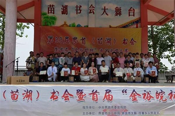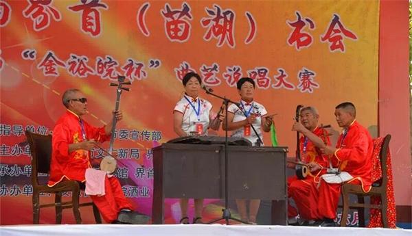 6月29日界首市第33届苗湖书会暨首届曲艺说唱大赛在任寨乡苗湖书会场举行,来自河北省、河南省、山东省及我的二百余名曲艺艺人汇聚于此,现场献艺,阜阳科技工程学校渔鼓社团的学生们作为曲艺界的“后备力量”参加比赛