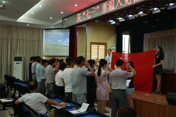6月30日上午8点整,全体党员在实训楼报告厅有穆达书记带领,面对党旗,举起右手,重温了中国共产党入党誓词。随后学校党总支书记穆达上党课——《中国共产党入党誓词的历史沿革》,穆书记介绍了中国共产党入党誓词历史发展过程及其作用,并要求全体党员牢记誓词,背会誓词,把入党誓词的各项内容落实到行动上、落实到平时的工作中。