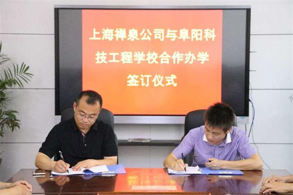 7月24日下午,阜阳科技工程学校与上海禅泉公司举行了合作办学签约仪式。校长闫锋与上海禅泉公司总经理邓润华出席仪式并签署双方合作办学协议书。