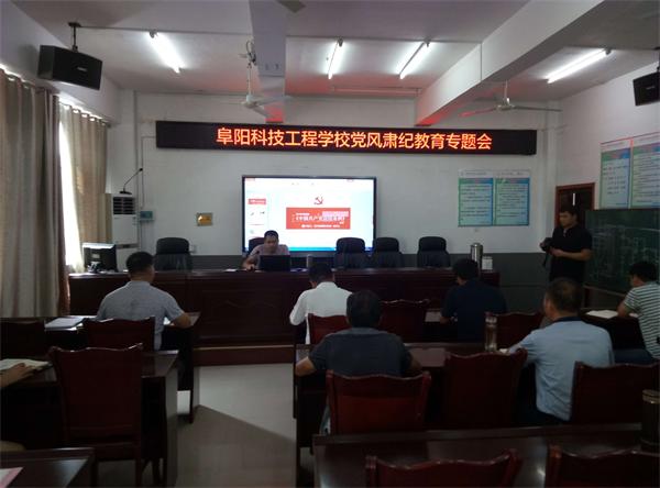 8月18日下午,阜阳科技工程学校召开党风肃纪专题教育会议。市纪检委驻教育局纪检组组长戴学礼作专题报告。