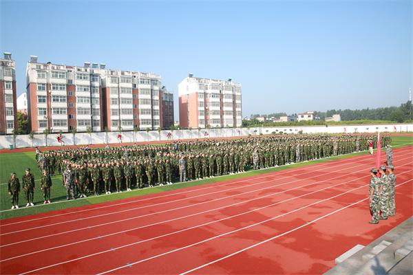 9月7日上午,阜阳科技工程学校举行2017级新生军训开训典礼,共1200余名新生参加。