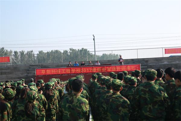 典礼上,教官、新生代表首先作训前发言,阜阳科技工程学校校长于洪波作了动员讲话,学生处负责人宣读了军训纪律。市人武部部长杨益忠对军训提出了具体要求。他提到,军事教官要严把质量关、安全关和思想关,加强学生国防教育,严格训练,磨炼意志,强健学生体魄;参训学生在军训中要发扬“不怕苦、不怕累、不怕晒、不怕流汗”的精神,刻苦训练,努力提高军事技能,培养良好习惯,完善自我,为以后的学习生活奠定坚实的基础。