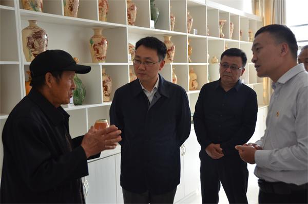 何逢阳查看了学校整体校容校貌,走进学校数控加工中心、汽修实训中心详细了解设施设备使用情况,听取于洪波关于学校发展和教学实训情况的介绍,与正在备战2018年技能大赛的师生进行了交流。在安徽省非遗传习基地,何逢阳饶有兴致地观看了学校摄影教师张振磊摄影作品展,询问张振磊目前的代课情况,要求张振磊努力培养出更多的摄影人才。何逢阳与安徽省非遗传承人王京胜亲切交谈,了解学校目前开设的界首彩陶专业情况和彩陶人才培养情况,要求学校一定要做好非遗传承教育。何逢阳又详细参观了竹编传承人王银工作室、民间传统工艺剪纸大师贾玉锋工作室、安徽省非遗传承人界首渔鼓非遗传承人苗清臣工作室。