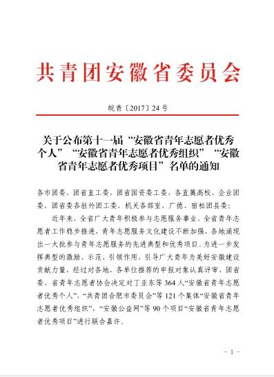 阜阳科技工程学校荣获第十一届“安徽省 青年志愿者优秀项目”荣誉