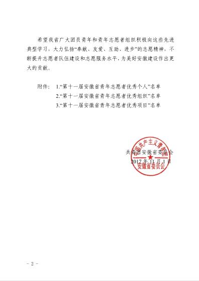 近日,共青团安徽省委员会下发表彰通知,阜阳科技工程学校“红绿蓝关爱留守儿童志愿服务项目”荣获第十一届“安徽省青年志愿者优秀项目”;16汽修1班黄路路同学被评为“第十一届安徽省青年志愿者优秀个人”。