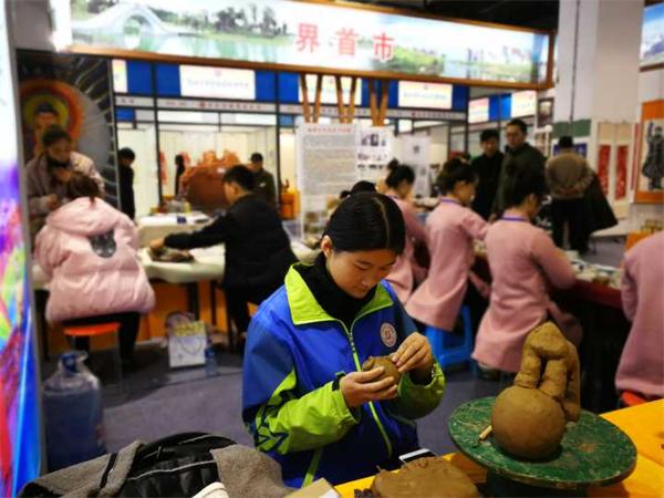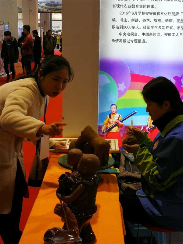 在界首特色展区,学生们表演了泥塑、茶道、剪纸等传统文化技艺,展现校园文化建设、非遗传承教育等领域的最新成果,成为界首特色展区最大亮点,充分展示了当代中职生的艺术风采。