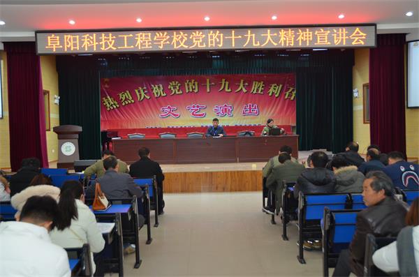12月1日下午,阜阳科技工程学校召开了十九大精神宣讲会议。界首市委党校教研室副主任、高级讲师朱峥嵘为全体教职工作了题为《新时代 扬帆再起航,新思想 引领新征程》的宣讲报告。