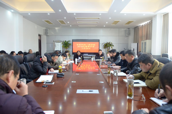 2月25下午,阜阳科技工程学校校长于洪波主持招开了2018春季开学工作会议。全体中层管理人员与会。