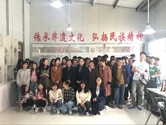 4月25日,阜阳师范学院艺术系师生在界首彩陶国家级传承人王京胜的陪同下对我校非遗教学开展情况进行调研。
