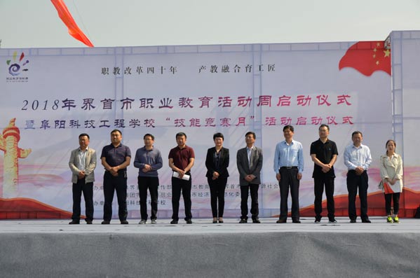 5月10日上午,以“职教改革四十年产教融合育工匠”为主题的界首市职业教育活动周在市体育场举行了盛大的开幕仪式。界首市人大副主任司建丽,界首市政协副主席陈刚,界首市人民政府办公室副主任武建强,界首市委宣传部副部长聂剑杰,界首市经信委主任王方来,界首市教育局局长梁志、安徽云龙粮机有限公司总经理曹鹏飞出席了仪式。全体师生和社会群众3000多人参加了开幕仪式。