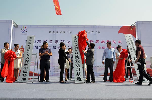 仪式上,安徽云龙粮机有限公司与阜阳科技工程共同签订了校企合作协议。出席的有关领导为校企合作和基地共建揭牌。