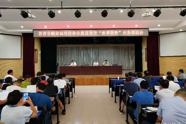 8月14日上午,界首市顾集镇帮扶单位脱贫攻坚“秋季攻势”业务培训会在阜阳科技工程学校举行,会议由顾集镇脱贫攻坚帮扶单位牵头负责人王玮主持,顾集镇镇长段瑜、副书记吕彦磊、各帮扶单位负责人及帮扶责任人400余人参加了会议。