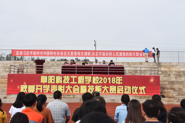 乘风远航启新程,春华秋实绘佳卷。2018年9月21日下午3点,阜阳科技工程学校全体师生齐聚学校操场,隆重举行了秋季开学表彰大会暨技能大赛启动仪式。大会由副校长张立主持,共有九项议程。