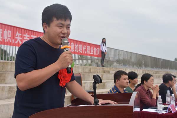 在代表发言中,技能大赛优秀辅导教师代表刘洋、优秀教师代表赵悦、技能大赛农机维修国家二等奖获得者刘亚格进行了发言。