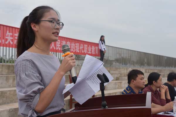 蔡婷婷老师带领全体师生进行技能大赛宣誓。