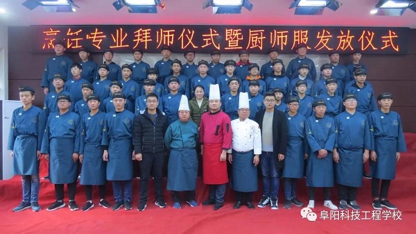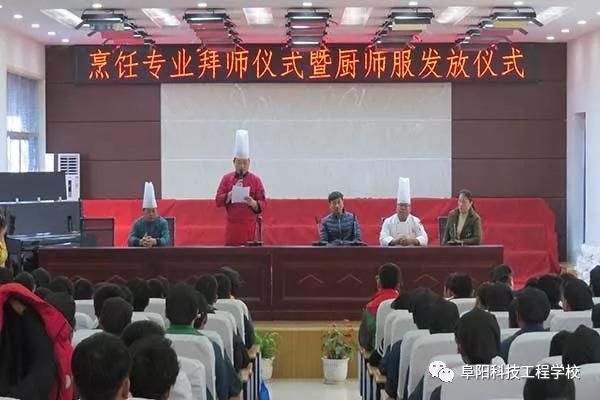 11月22日,阜阳科技工程学校烹饪专业一场简单而不失隆重的拜师仪式在阶梯教室举行,烹饪专业全体师生参加。