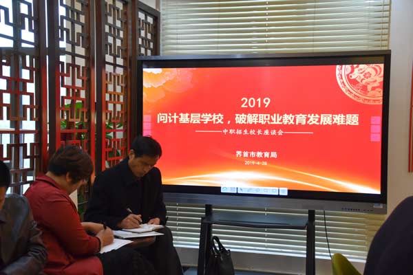 张辉指出,党和政府把职业教育当成“基本国策”,与民族复兴的中国梦实现相结合,全体教育人要站在界首教育一盘棋的高度,清醒地认识到发展好职业教育就是发展好界首教育,就是造福界首父老乡亲,要统一思想,提高认识,创新宣传。各校要互相学习,好的经验做法要分享,合力共赢。工作要务实,把中职招生工作与当前各项工作同统筹,同落实,与扫黑除恶治乱相结合,严厉打击生源买卖、有偿招生等违规招生行为。