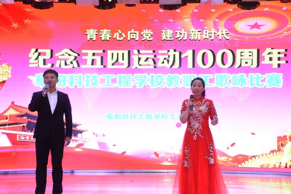 429,阜阳科技工程学校举行了“庆五四 唱红歌 诵经典 ”比赛。全体教职员工齐聚一堂,怀着饱满的热情引吭高歌,诵读经典,传承文明,纪念五四运动100周年。
