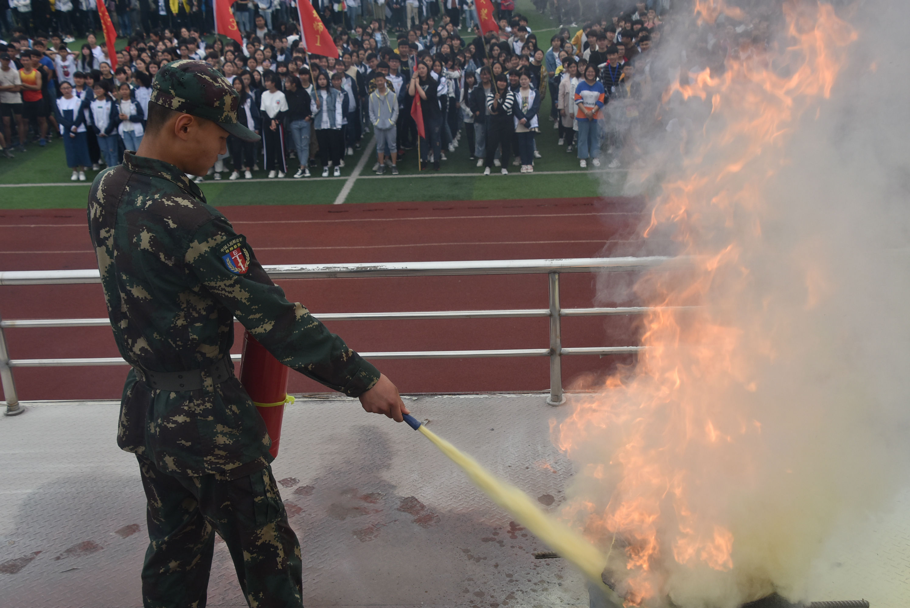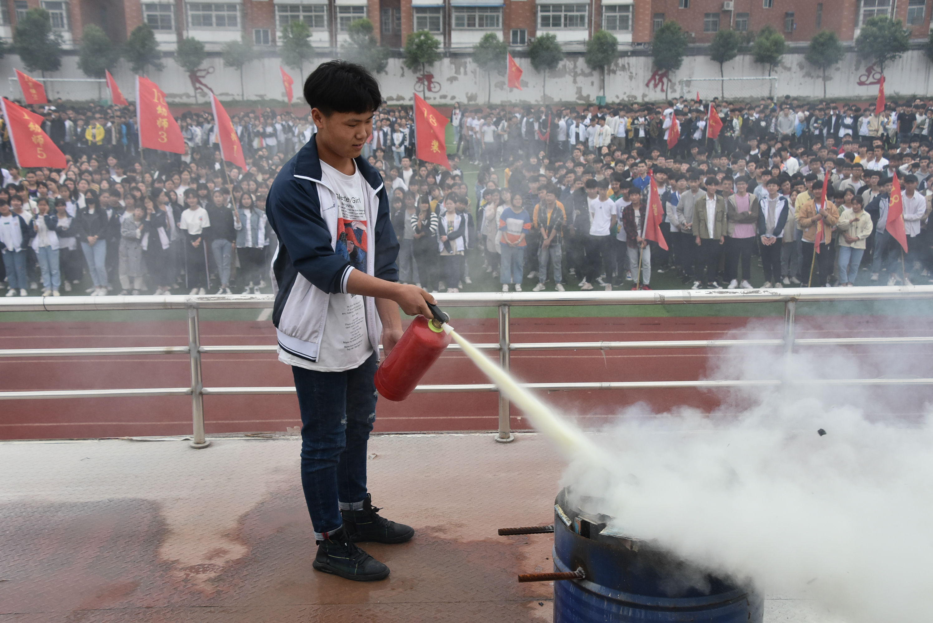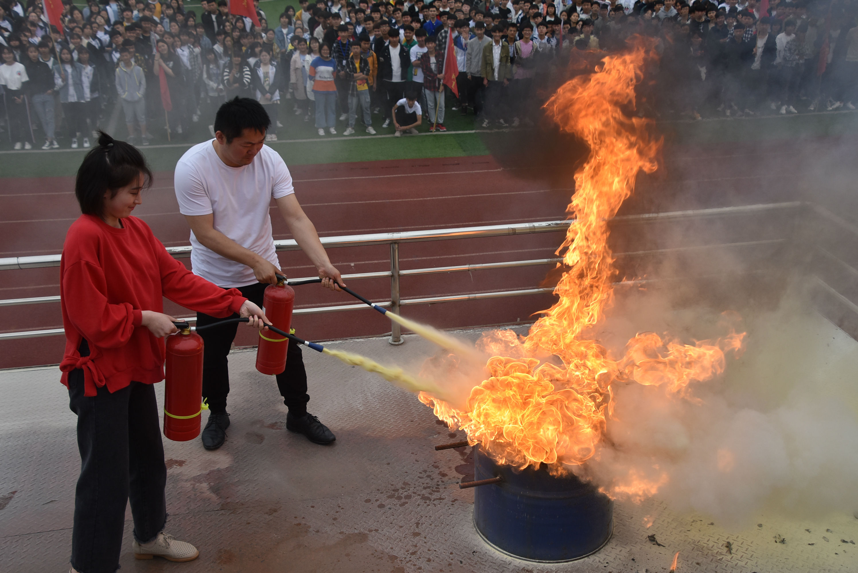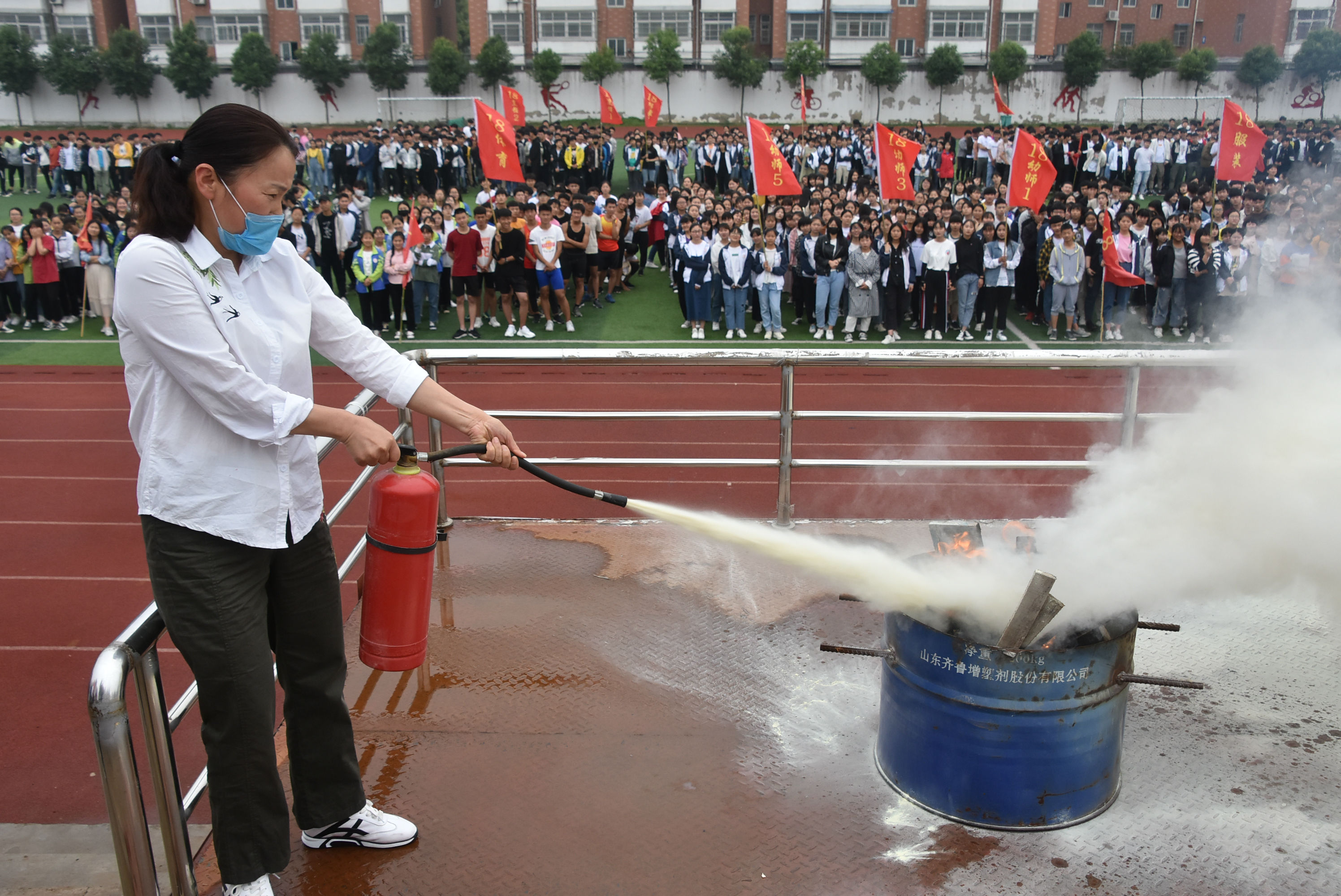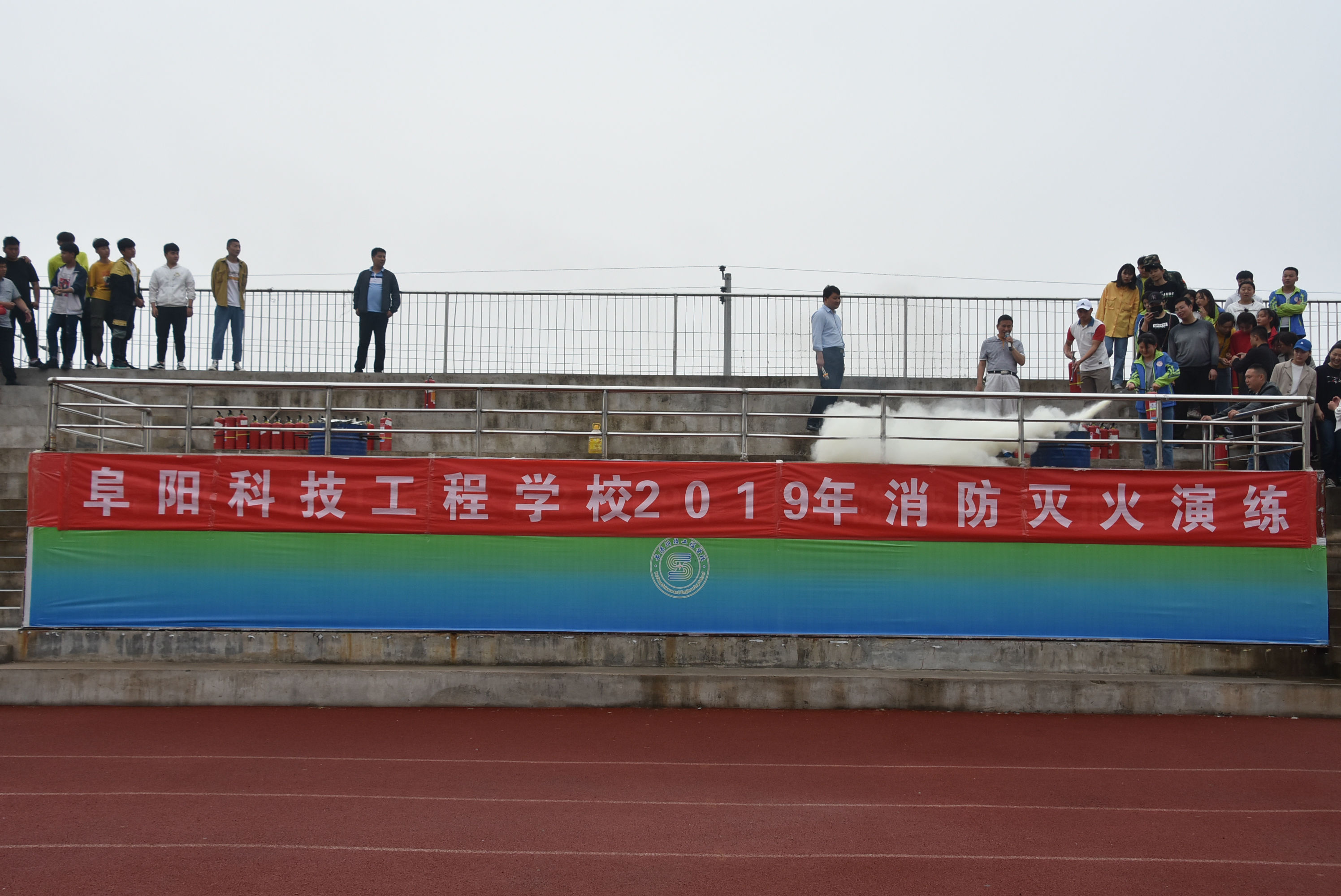 为进一步提高学校师生的安全意识,增强应对和处置突发消防事件的能力,掌握扑灭初期火灾的技能,5月15日上午,阜阳科技工程学校对全体师生进行了消防灭火器使用培训及演练活动。