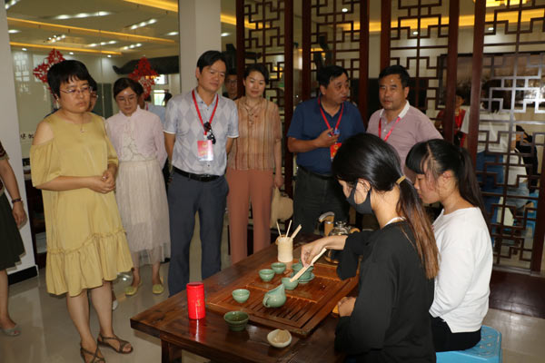 司建丽、王明志一行重点察看了学校“读书会”、“读书漂吧”、“职工书屋”和图书室等场所,并对学校实训教学和非遗文化传承情况进行了了解。代表们对学校近几年的发展给予了高度的评价,对学校的书香环境创设和读书会工作给予了充分的肯定,认为学校以书香育人,以技能培养为抓手,办出了特色,树立了品牌,提高了学校的社会影响力和认同度。