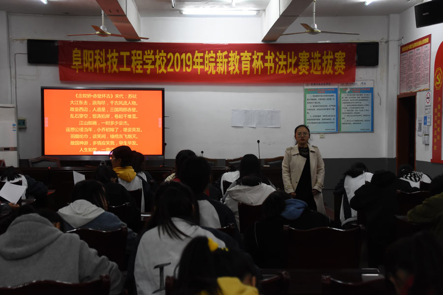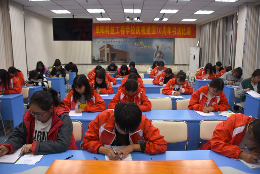 为丰富学生校园生活,培养他们正确的书写习惯,进一步引起学生对书写的高度重视,激发他们对祖国灿烂文化和语言文字的热爱之情,同时为皖新教育杯选拔参赛选手,10月27日晚,阜阳科技工程学会举行了2019年皖新教育杯书法比赛选拔赛。由各班推荐出的近90名表现突出的选手参加了比赛。