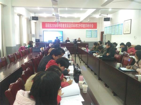 12月23日,阜阳市2016年中职教育英语学科对口升学教学研讨会在我校笃行楼会议室顺利召开。阜阳市职教局副局长连璞出席了会议。