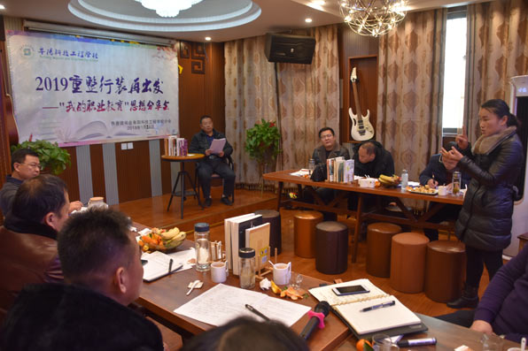 1月26日,阜阳科技工程学校校领导班子成员、各部门负责人齐聚界首市樊登书店开展“2019重整行装,再出发——‘我的职业教育思想’分享会”。