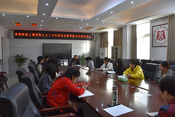 3月13日下午,阜阳科技工程学校教科室组织了2019年阜阳信息化教学能力比赛启动会,会议由教科室负责人尚庆锋主持,报名参加今年信息化教学比赛的23名教师参加了此次会议。