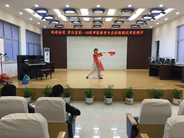 为了找出学生技能方面的不足,学校特组建了一个由界首市新华幼儿园骨干教师与本校专业教师组成的测评团队。