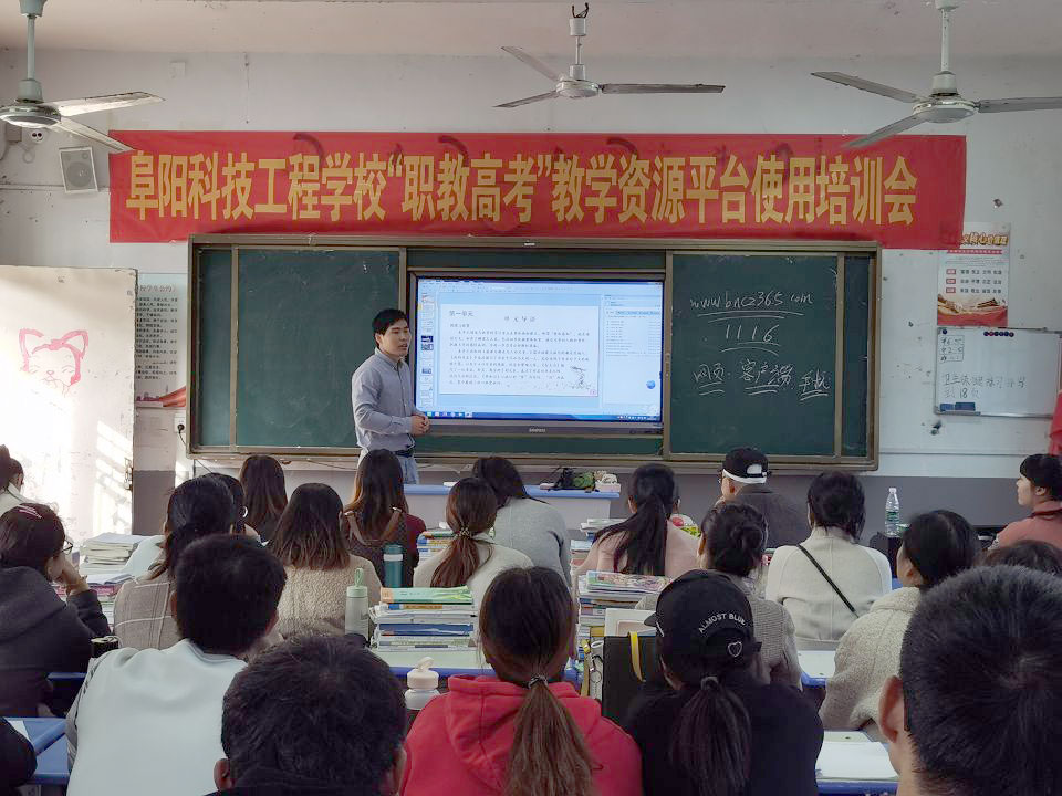 为享用大数据时代带来的教学的高效与便捷,提升教师信息化教学能力,11月16日上午,阜阳科技工程学校举行了“职教高考”教学资源平台使用培训会。来自语文、数学、英语三个教研组的80余位老师参加了此次培训。