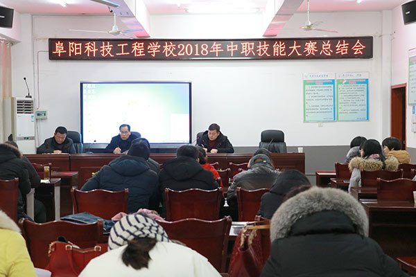1月23日,阜阳科技工程学校赛事中心组织召开了阜阳市2018年中职院校技能大赛总结会。学校班子成员、全体辅导教师参加了会议。