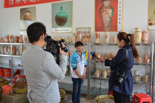 4月14日,中国新闻社到阜阳科技工程学校进行“非遗进校园”专题采访报道,界首市委宣传部宣传科科长张大鹏陪同采访。