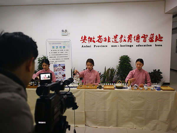 1月23日,安徽电视台记者走进阜阳科技工程学校,采访报道学校中华优秀传统文化传承教育情况。