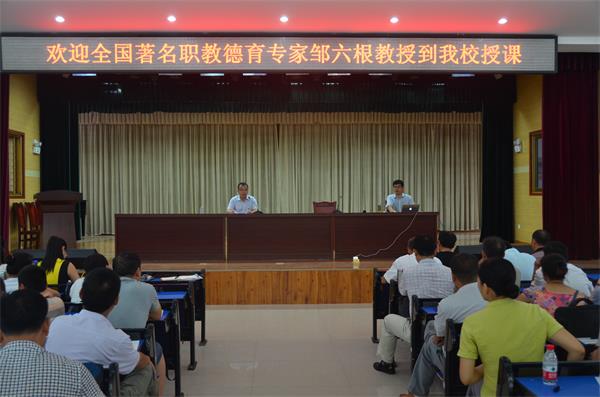 全国著名职教德育专家邹六根到阜阳科技工程学校讲课