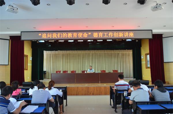 827日,阜阳科技工程学校举行2016年德育创新暨班主任培训会。校长闫锋参加培训,并做了《追问我们的教育使命》主题讲座。