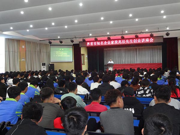 5月11日下午,阜阳科技工程学校邀请了界首市金裕皖酒业有限公司董事长段兆法为全体青年学生举行创业讲座。