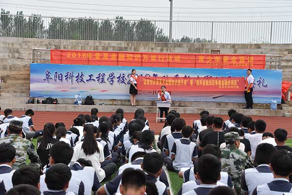 为增强同学们对新型诈骗的防范意识,维护自身合法权益,创建和谐平安校园,应学校的邀请,9月5日下午,界首市农村商业银行党群工作部总经理张戈等一行人来到我校新生军训场地,为1800多名师生作了题为“预防金融诈骗,提高防范意识---青少年普金宣讲”的金融安全知识讲座。