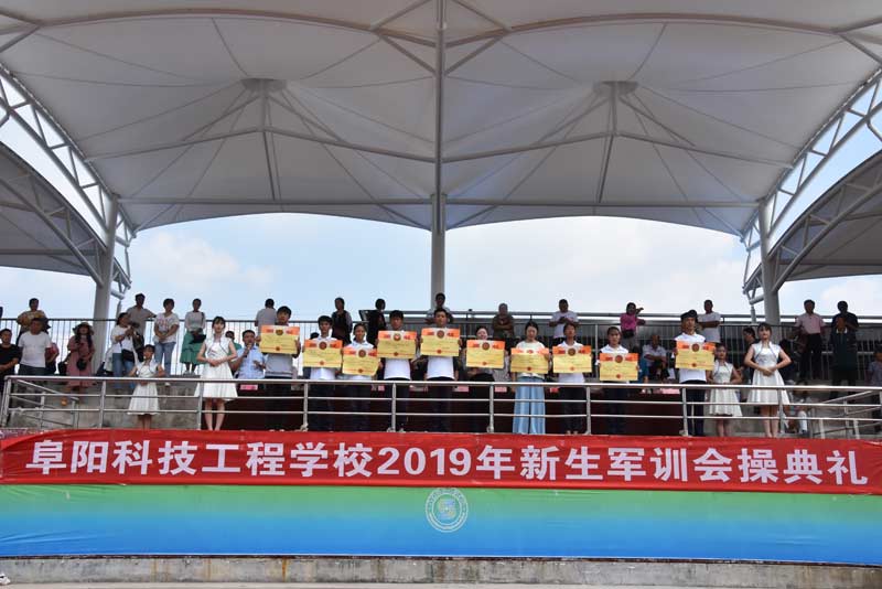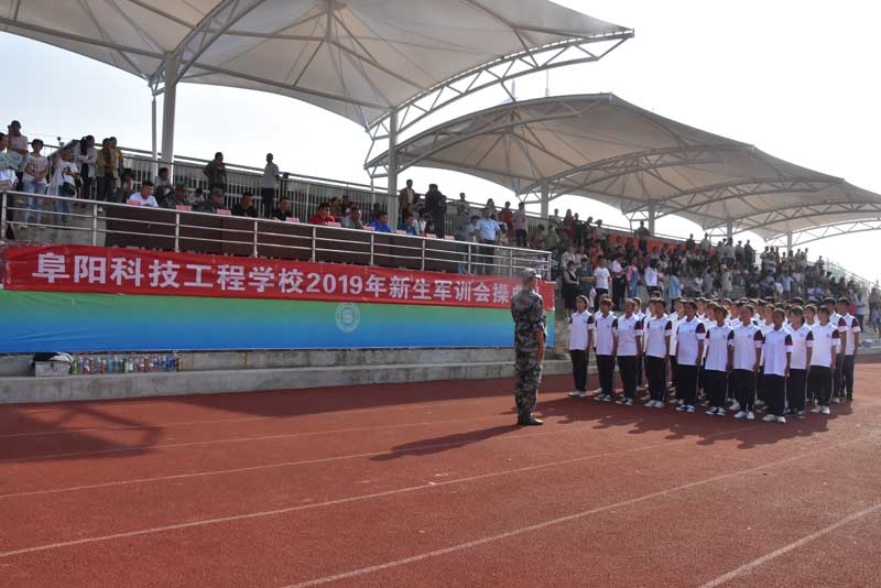 2019年9月6日上午,阜阳科技工程学校举行了2019级新生军训会操表演。校长于洪波、2019级班主任及学生家长出席了会演。
