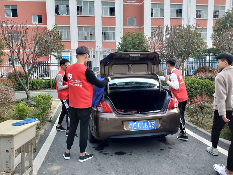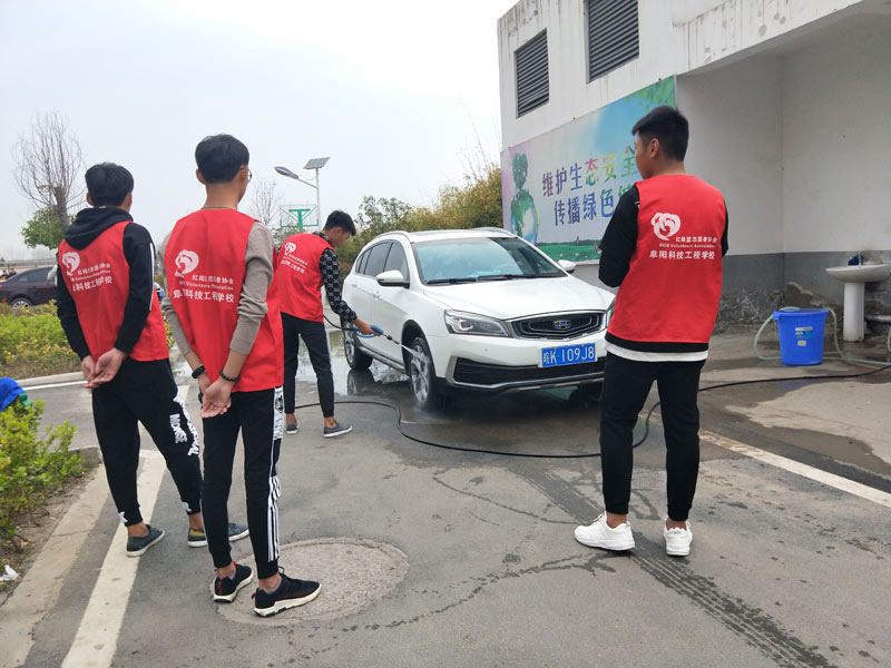 阜阳科技工程学校汽车美容专业学生开展义务洗车活动